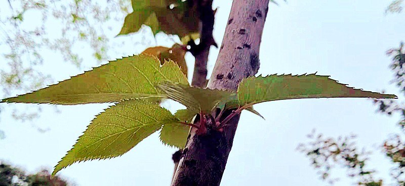 朔风细微,疏林灯光碎。一盏粗茶绿叶坠,且倚小窗浓睡。 一片肥叶厚垂,却看迎春花穗。问君野居何醉?梵音蓝天别岁。