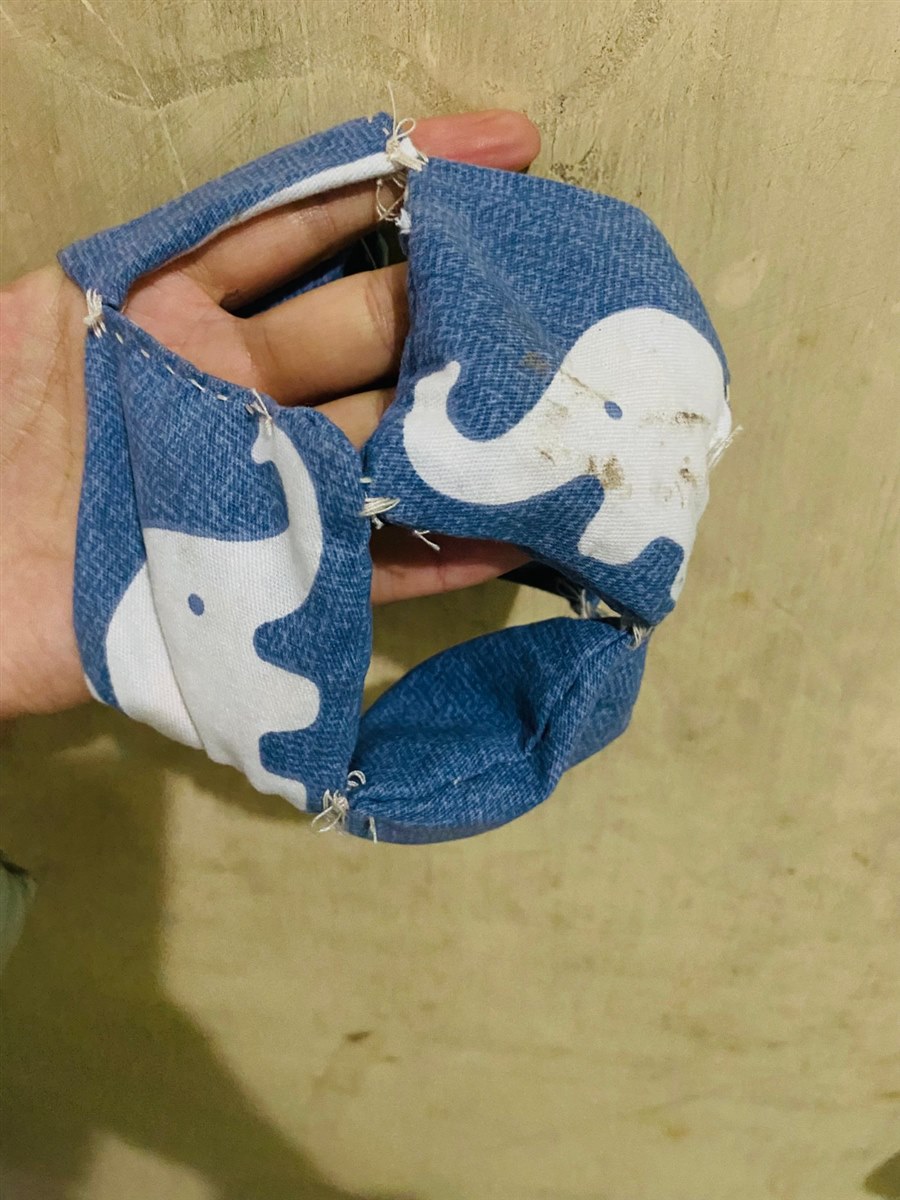 我从衣柜里找出了一块废旧的布头,是妈妈以前裁剪完剩余的。接下来,我就把布裁剪成六块相同大小的布块,开始缝制。蓝色的布头上面印有小象的图案。我小心翼翼的缝制着,生怕把小象的团案缝制进去,所以格外小心,奶奶在旁侧悉心指导我,穿针引线,不过一会儿,六个相同大小的正方块就缝制好了,奶奶说,你这个毽子缝的有点大啊,踢起来估计会不稳当。“没事的奶奶,大小都一样,能踢就行!”于是奶奶找了一穗玉米棒子,拨完后放在了小正方形的口袋中,填完玉米粒就开始缝口了,将六个口一缝紧实,确保玉米粒不会漏出。最后一道工序,是将六个正方形的布块连在一起拼成一个六边形就行了。