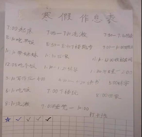| 寒假第一周,我的学生们这样过 友人玉生烟又有新作发圈了,她的文字总是能让人在平淡无奇的日子里找到些许精神。我且引来,装饰门楣,以示附庸风雅。 几日昏昏未转晴,泥融剩雪洗残英。 高台幸有春将近,墙角偷开不羡名。 古风的词句,雅致的配图,细细品来,意味无穷,想来友人在记录下这悄然无声的美好画面的瞬间,定是怦然心动的吧。 而此情此景,在我的眼里,正像极了当下的“双减”。 它来了,在教育生态俨然已走入隆冬,全社会亟需破冰之时;它来了,以国家政策的名义、以势不可挡的力量;它来了,让疲于内卷、焦虑无助的社会、家长和孩子看到了教育发展的“春天”;它来了,带着清鲜的活力,崭新的姿态,扑面而来! 于是,这个寒假的第一周,我的学生们这样过。 将近一个月的寒假,说长不长,说短还真不短呢!没有计划怎么行?在学校里养成的按部就班的好习惯要延伸到家庭生活中来。于是,有心的孩子已经早早给自己制定了寒假作息表。一条条,一项项,计划周密,井然有序。看上去,孩子们对自我的要求还真高呢! 小“何”才露巧巧手,早有妈妈喜心头。看,我们班稳稳当当的学霸何周宜航同学,包起饺子来也得心应手,真是能文能武呢!想必这顿饺子,小何的妈妈一定吃得格外美味吧! 麦香弥漫,创意无限。这团面真是被韩珈桐一家人玩出了“花儿”来。奶奶、妈妈、女儿齐上阵,你和面,我擀面,她凹造型!哈哈,在韩珈桐的小手里,这面团不就是平日里玩儿惯了的彩泥嘛!团圆、幸福、平安,所有美好的祝愿都在这些栩栩如生的形象里膨胀、壮大。 除了家务劳动,体育锻炼也是必不可少的。眼前这个穿着黑外套的小小的身影,就是薛可心同学呀,她一大早就起来在家门口的公园里跑步啦。仔细看,她家的小黄狗正紧跟在后面监督她呢!富氧的空气,舒适的跑道,前面的小哥哥,后面的小狗狗,这是不是很有趣? 寒假的第一周,家长和孩子们从单一、枯燥的教科书、写作业的模式中切换过来,得到了真正的休息和放松,并逐步开始寻找到适合自己的新的成长方式。 减轻负担,融入生活,感受乐趣,开拓自我。这也许就是双减带给我们的寒假最直观的改变吧。 最后,且容我也卖弄一下,用最少的文字,表达自己满怀的期望! 幸喜春已至,静待百花开。 |