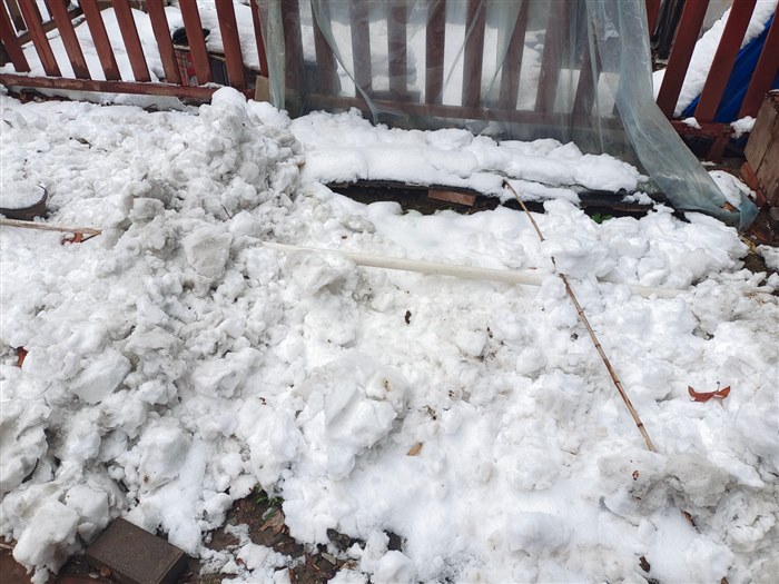 我仍不满足,还想让大自然给予的雪水更好的滋润这4平米的土地,滋润那零零星星的几棵幼苗。我顺来了楼道里的一把铁锹,把小区里的雪一锹一锹的都运进我家的菜地里,雪堆起老高,邻居问我会不会把菜压死,我说管他呢,压死了就再种油菜。