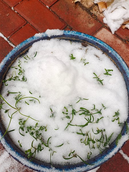 幸好,幸好!预报有一场大雪。我早早就揭开了薄膜,让大地,让幼苗,和铺天盖地的雪花来一场激烈的遇见吧!