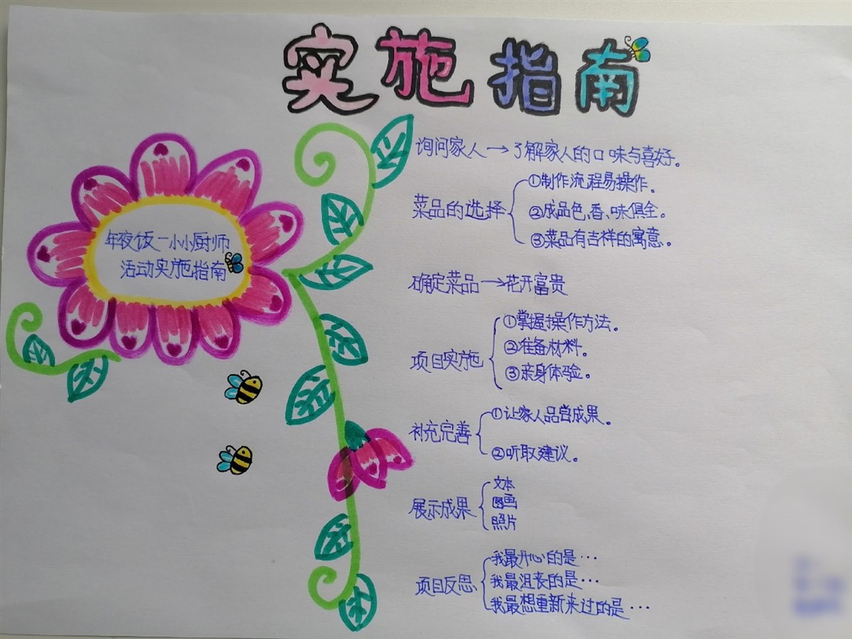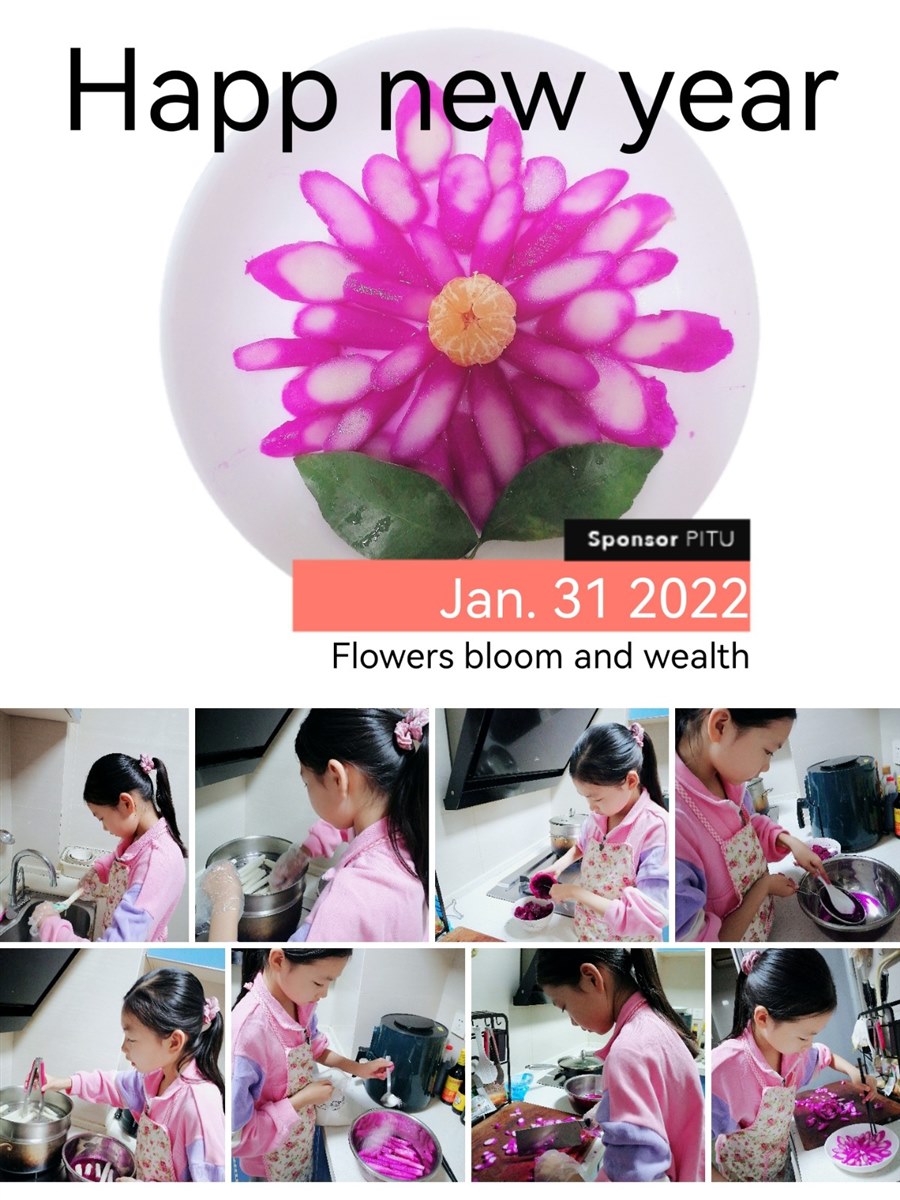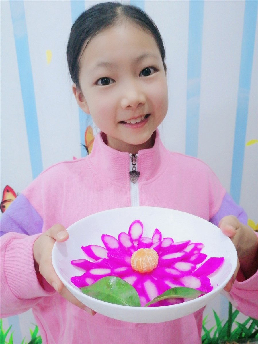 | 除夕之夜,为家人准备一道拿手菜,不仅是我今年寒假的项目学习目标,而且还是我新年的愿望:我想为辛苦了一年的爸爸、妈妈奉上一道美味可口的菜肴,表达一下自己的心意。 为了做出一道家人都喜欢的菜,首先我制订了计划实施指南。接着我询问家人,了解他们的口味与喜好:爸爸喜欢清淡一点的饭菜,而妈妈和我偏向于酸甜可口的菜和甜品。最后,我要考虑的是流程要简单易操作,最好还要色、香、味俱全,有吉祥、喜庆的寓意。 经过查阅相关资料,我发现山药健脾益胃、有利于脾胃消化吸收。红心火龙果富含花青素和膳食纤维,维生素C和铁的含量也很很丰富,可以促进消化吸收,美容养颜。砂糖桔健脾清肠,润肺化痰。爸爸平时工作压力大,脾胃消化不好,于是我决定用红心火龙果、山药和砂糖桔做一道菜,希望爸爸吃了这道菜能调理肠胃,妈妈能美容养颜,延缓衰老。 准备好需要的材料后,除夕这天下午四点我就开始行动了!我先把山药洗干净,用削皮刀把山药皮削下来,然后把山药放到蒸锅里蒸20—30分钟。趁着蒸山药的时间我把红心火龙果用铲米饭的勺子压出玫红色的果汁,放入少许白糖。接着把蒸熟的山药浸泡到火龙果汁里,浸泡两个小时。然后把浸泡过的山药取出,用刀斜着切成薄片。把提前剥好的一个砂糖桔放在盘子中间,把山药薄片摆成花朵的形状,放上两片绿色的叶子装饰。哇!白色渐变到玫红色的花朵,在桔色花心和绿叶的映衬下,真是漂亮!我给它起了个好听的名字“花开富贵”!希望我们的生活幸福美满。它可是让我煞费苦心!我好激动呀!一定非常美味吧! 我赶紧端给了爸爸妈妈,让他们品尝我的“杰作”。爸爸和妈妈分别用筷子夹起一块放进嘴里,仔细地品尝。我急不可待地问妈妈:“怎么样?”妈妈微笑着对我说:“外形很漂亮!如果再放点调味的的东西就更好了。”爸爸建议说:“可以放点蜂蜜。”“难道不甜吗?我放了一点白糖呀!”我仔细品尝了一下,发现口味除了火龙果淡淡的甜味,基本没什么味道。为了保持口味清淡,估计是白糖放少了。 放点什么好呢?白糖吃多了不好,蜂蜜太甜了,不是我理想的选择。我忽然想起饮料水溶味道酸酸甜甜,我一拍脑袋,高兴地说:“不如就把水溶洒上去吧!它基本无色,不影响色泽,却能增加口感。这可真是个好办法呀!”于是我把水溶浇了上去,让爸爸妈妈品尝。爸爸竖起大拇指,开心地对我说:“这次我只能对你说色、香、味、俱全,创意好,十分完美!你真是位优秀的小厨师!”妈妈说:“感谢你为我们做这道健康又养颜的菜。”我高兴地跳了起来,我成功了!我好开心呀! 通过这次做年夜饭,我发现制作方法我掌握不错,制作过程比较顺利。不过刀工有待提高,切的山药片厚薄不够均匀。由于山药需要用火龙果汁上色,最少需要2个小时,整道菜做下来用了三个小时,延误了开饭时间,时间上没有把握好。所以如果有机会,我最想重新再来的是:提前把山药蒸熟、泡好上色,就能节省不少时间。 我的感想是:世界上没有东西是完美的,但是只要你向往完美,并为之付出努力,完美就会慢慢地靠近你,它靠得越近,说明你离成功越近,越接近完美! |