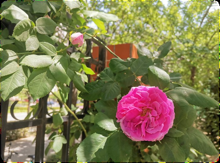 水晶帘动微风起,满架蔷薇一院香。四月底的郑州,已是春色盎然。普惠校园里也一派生机。看这硕大的花朵,在阳光的照耀下,红得明艳,开得热烈。层层叠叠的花瓣显得整朵花肥嫩、饱满,甚是让人喜爱。 当初拍这张照片时,满心里想的都是怎样调整角度、光线和构图,好让这朵花以最完美的状态呈现在画面里。可以说,全部的注意力都在它。今天,当我再次审视这张图片时,我才注意到,旁边那朵正含苞欲放的花骨朵,很明显它的花期是晚了一两天,但此刻它也在努力朝着阳光迎风摇曳。然而,和这朵正在开放的花相比,它一定是被大多数人所忽略掉了的,即使误入镜头,也被作为虚化的背景存在,甚至都不被人发现。