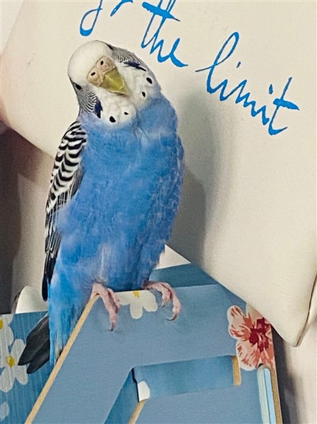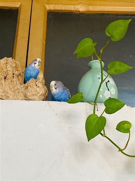 朋友说:“这是一对怕人的鸟”,当我把一对虎皮鹦鹉接到家里,放在自己的屋里时,我才发现两个小脑袋不停的在笼子周围打探,身子慢慢靠近他们时,笼子里就像吵翻了天,叽叽喳喳的他俩赶紧钻到“鸟窝”这个避风港。圆溜溜的脑袋,眼睛小的像小米粒一般。第一次碰面时,竟然没看到他俩的眼睛在哪儿,错把两个鼻孔当成了眼睛。蓝蓝的羽毛,像是画家调出来的颜色一般湛蓝,胸部还有紫色的羽毛掺和在一起,每次吃饱时,肚子就像一个圆鼓鼓的丸子,蓝色和紫色相配,让人看到,总有禁不住想去摸摸那滑溜溜的羽毛。鹅黄色的小嘴下自己还搭配了一串项链,灰白相间。这是他们最爱的“饰品”。每天的梳洗他们都不会错过自己的脖颈。我喜欢坐在笼子旁,安安静静的观察着这两只“小可爱”。他俩一会儿啄啄自己的羽毛,一会清洗自己小爪子,人类该有的步骤他们一样不少,吃完食,就把自己嘴巴在笼子上来回蹭蹭,稍许就开始整理自己的羽毛。从脖子到爪子无一处不细细的梳理,那小嘴儿将一根根羽毛,挑拣、梳洗。紧接着就把圆溜溜的小脑袋藏在了自己的尾巴里,呼呼地睡着了。