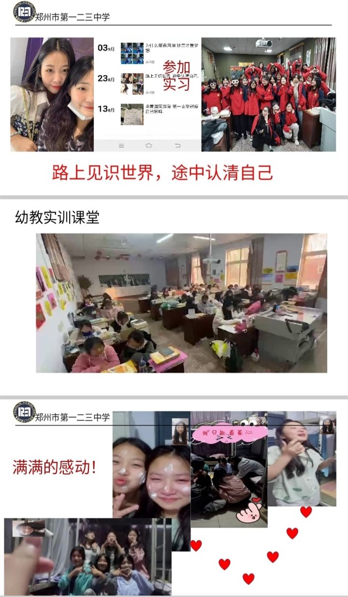 | 今天,和大家分享的主题是《将心比心,助力成长》。 据美国职业教育管理专家舒伯所说,人的一生分为五个阶段:一是成长阶段,二是探索阶段,三是建立阶段,四是维持阶段,五是退出阶段。我们的孩子刚好处于0~14岁的阶段,正处于成长阶段,正是树立自我概念,发展对未来工作世界的态度,并了解工作意义的关键阶段,此后,孩子对工作有了基本的定义后,才会在更广泛的职业选择中不断探索。由此可见,我们中三的孩子迷茫、焦躁是非常正常的,他们并不知道要去向何方?他们经常思考“我是谁,我在哪里,我去向何方,我如何到达”?在孩子如此重要的阶段,我们的父母、我们的老师应将心比心,对孩子人生积极进行助力。 在接触职业规划后,我与孩子们发生了许多既有趣又感动的故事。大家看到的照片左边是佳晴,右边是鑫蕊,她们是我的心肝宝贝。当时她们走职高春季班的时候,和你们一样艰难、曲折,尤其是佳晴。佳晴是一个很活泼的女孩子,但当时有几天,我发现她郁郁寡欢。于是,我关切地问佳晴,“你怎么了”,她说,你给我妈沟通一下,她真的太不可理喻。然后我给佳晴妈妈打了电话,妈妈说:“老师啊,我的是个女孩子,我是这样想的,初中毕业去超市打个工,再过两年,我就给找个好人家嫁了,再过几年,我就可以当外婆了。”当时听完,我内心一颤,这么小的姑娘很快就要有宝宝了,哇,不可思议。然后,我找到佳晴,为她出谋划策,我建议她与妈妈进行深入沟通。我告诉佳晴,沟通时要注意这三个方面:第一要心平气和与妈妈沟通。现在好多家庭都是孩子一句,父母一句,你声音大,我比你更大,好像是谁声音大谁有理一样,最后摔门而出、不欢而散。孩子,父母的养育之恩大于天,他们始终是爱你的,要学会心平气和地表达自己的想法。言语不行,我们可以借用书信、微信文字来进行表达。第二要立场坚定,要拥有目标。孩子,你知道你想学什么,你父母便知道你想干什么,学什么,便知道如何给你安排。第三要给父母一个承诺。其实不是你的父母,我作为老师也在担心,你换个环境、换个专业,会不会好好学习,力争学有所成呢?由此,要表明态度,给予父母、师长一个承诺。在我的帮助下,佳晴顺利和妈妈进行了沟通。后来,佳晴顺利地到开封学习了幼教专业。其实佳晴除了学习程度弱一点,组织能力、表达能力等都无可挑剔、十分优秀。到新学校,她经常组织班级活动,是老师的好助手,她也经常利用寒暑假进行实习,当看到她分享给我她的充实生活时,我倍感欣慰。她真的做到她的格言“路上认识世界,途中认识自己”。为什么说她们是我的心肝宝贝,2020年我生日时,佳晴与鑫蕊在开封组织全宿舍同学利用微信隔空为我庆祝了生日,泪流满面,感动不已!如此感恩的孩子,前程似锦,未来可期! 其实不止是佳晴和鑫蕊,还有很多孩子获得成长与蜕变,其中就有我们的雪。大家看到左边这张照片,有种莫名的熟悉感、深深的无力感。小头一低,小手一揣,谁也不看,谁也不爱,雪最初的状态便是如此,让我倍感难为。后来雪接触到职高,便萌生了学习厨艺的想法。雪回家和妈妈表达后,妈妈暴怒,电话立马打给我,质问孩子为什么会这样?我安抚了妈妈,邀请她来到学校。然后,我们进行了三方会谈,妈妈才真正了解到孩子的目标,并表示愿意支持她进行深入学习。雪很幸运,遇到如此开明的母亲,很快,她便开始她的厨师学习生涯。雪既认真又努力,每天坚持厨艺打卡,现已小有所成。 其实,不止是幼教、厨师,很多尝试人生路的孩子都小有所获。学习旅游专业的孩子外出实战会把照片分享于我,学习平面设计的孩子日常练笔会把成果分享于我,刚入校的孩子收获青年挚友会把喜悦分享于我……真的,孩子们的这种愉悦与满足感是父母、老师所不能给予的,只有自我实践才能获得,果然,兴趣才是最好的老师。
