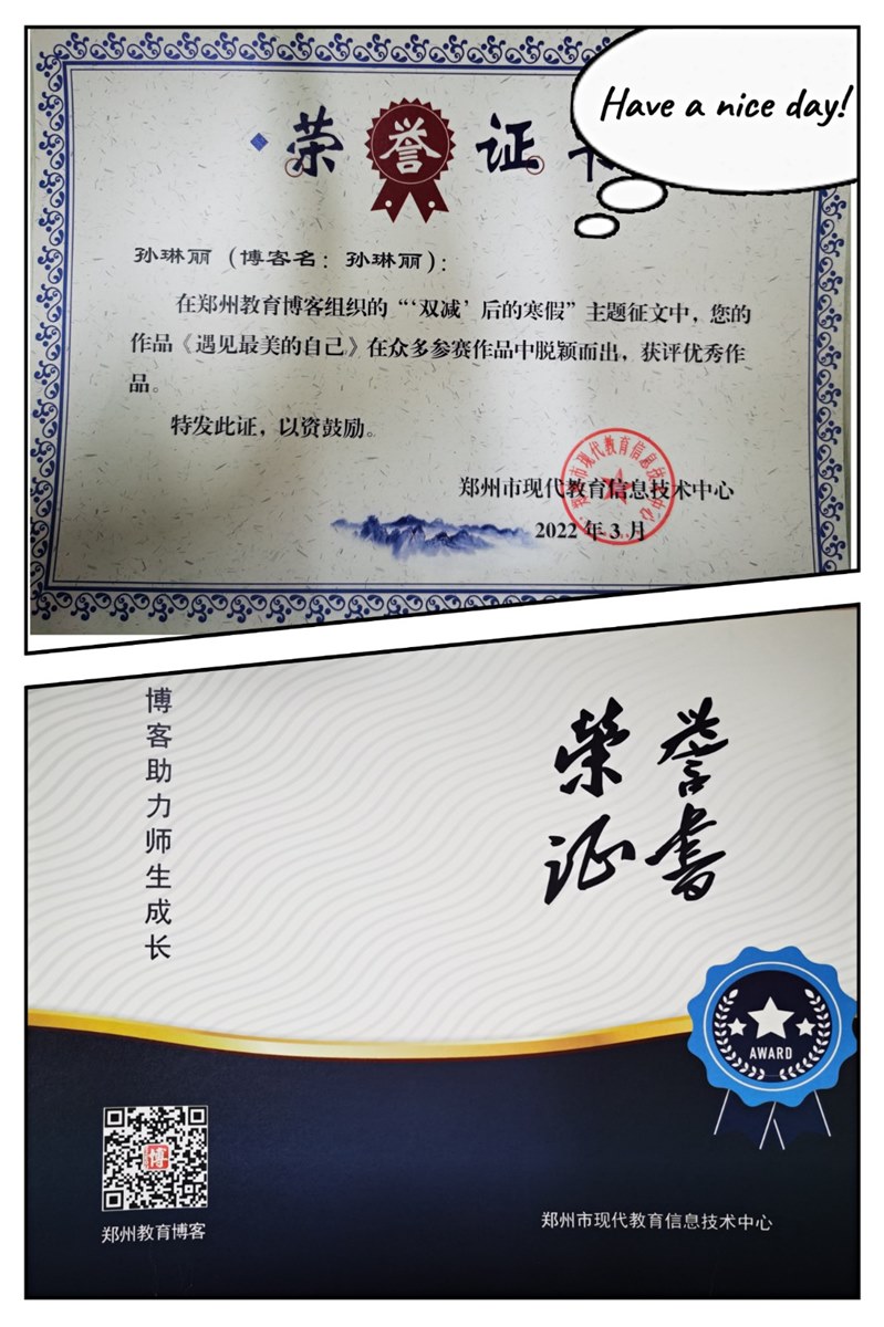 | 心中有阳光,眼中有美好,生活就会很灿烂。 今天非常开心,在郑州教育博客群中接到通知,让获奖作品得主领奖品。看到这个通知,那种感觉比自己课题立项通过、优质课获奖还兴奋,因为真的很意外,很惊喜,原来我也可以! 曾经自己也很喜欢写东西,但是一直仅限于写一些工作计划、工作总结、课题立项、研究成果之类的资料,不是工作需要的,就是评职称需要的,很多事情占据了我大部分的时间,可能这些都是自我放松的借口,博客闲置了好长的时间。年前,办公室的同事统计教师博文情况,听到数学组的田老师半学期十六七篇精品,深深的刺激了我,我的时间都去哪了。 于是,寒假期间给自己立了一个目标:多看书、多思考、多写博。正好赶上疫情,基本上都是居家活动,给我了更多写作的时间,恰逢郑州教育博客组织“双减后的寒假”主题征文活动,我连续写了三篇文章,每一篇都被评为精华,其中就有获奖的这篇文章《遇见最美的自己——青年教师双减后的第一个寒假怎么过》。那个红色的戳给我了更大的信心,按从1月25日正式进入寒假,到2月16日开学,期间我共写了15篇博文,12篇被评为精华,每一次被盖上红戳的时候,内心是一种被认可幸福,被共情的兴奋。 早一段时间就在郑州教育博客官方网站看到了我撰写的文章被评为优秀作品,但是完全没有想到还会有奖状和奖品。收到信息,正好办公室的小美女外出办事,拜托她去帮我把奖品取回来,拿到奖状和奖品的时候就迫不及待地发了一个朋友圈,让我的朋友们和我一起分享这份喜悦和幸福。随后,那个帮我取奖品的小美女就预约了我的那本《成为可怕的自律人》,这份书写的美好已经传递给了身边的人。非常感谢郑州教育博客平台,让我能重新审视自己,坚持一份自己喜欢的事情,获得努力后的惊喜。 结合自己近期写博所感,分享给大家几点我写博心得: 一是有真情。每一个人写文章的风格不同,有人喜欢写散文、有人喜欢叙事、有些喜欢理性分析......不管是哪种风格的作品,我觉得最主要的是文章要有情,是真正发自内心的思想或者情感,可能文字朴实无华,但却能字字入心,这就不失为一篇好的文章。我们办公室也经常会聊一聊写博的感受,大家一致认为最重要的一点是内容一定要是自己的真情实感。 二是会用心。写一篇好文章一定要有素材,身边也有很多老师聊天的时候会说,我们也想写文章,但是不知道要写什么。其实不管工作也好,生活也罢,能写的东西非常的多,就看你是否用心观察与思考。比如:班主任解决了一个家校沟通的问题或者一件学生之间突发事件、再或者班级举行的小活动;学科老师可以写寒假后的作业展示、我眼中的xx课堂;大家还有写一写生活中的小事件,比如:垃圾分类为什么成为新时尚、送快递的人等等,善于发现生活中的美,善于思考人性中的善,善于从不同的角度观察,用心写出自己的感悟,我觉得就是这就是一篇好文章。 三是能坚持。坚持写东西这件事最容易的也是最难的。其实,作为一个理科生,我最不擅长的就是写东西,自认为自己没有太多感性的情感,曾经的无知让自己也没有很好的阅读积淀,一直以来总是很自卑自己文学素养的匮乏,后来参加工作之后,慢慢地喜欢上了教科研之类的研究性学习,大概十年的时间,自己持续的做着课题研究这类的事情,可能从那时候开始,慢慢地积累了一些写文章的理性思考与框架的架构,为自己后期的工作调整及写材料等积累了很多的经验。所以,不管是写作新手小白还是写作达人,愿意写、坚持写就一定会有自己不一样的体验和收获,也会让自己看见不一样的成长。 最后,再次感谢郑州教育博客平台给我提供写作的平台,感谢郑州市教育博客编辑们对我作品的认可,让我在这个平台遇见了最美的自己,在这个平台遇见了智慧的你们,让我坚定了“用心皆有所获,坚持必有成长”的信念!感恩遇见,感谢成长! |