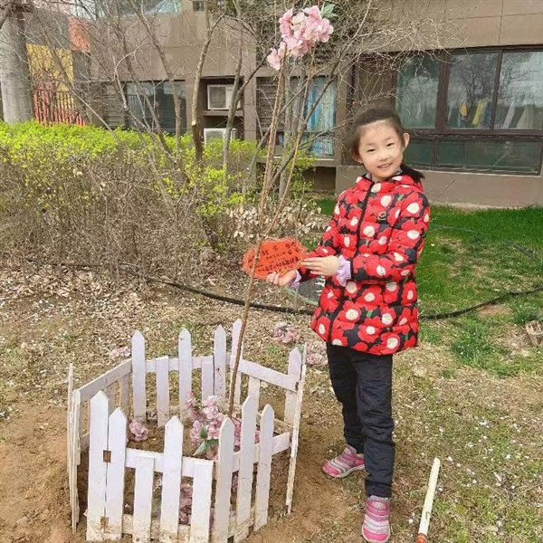 | 植树节小记 科学大道第二小学一(3)班 于依彤 3月12日是植树节,又刚好是周末,天气预报说下午会有一场小雨,正是植树的好日子。中午的时候,妈妈在我们小区物业中心给我领了一颗红杏树小树苗,准备把它栽倒我家楼后面的草地上,这样我就可以定期给它浇水、施肥,看着她一天天长大了。下午我上舞蹈课的时候,跟我的好朋友阳阳说了植树的事情,她和她的妹妹家家也很想跟我一起植树,看着她们期待的样子,我就爽快的答应了,心里想:植树是一件有意义的事情,跟好朋友一起植树就更有意义了! 3月13日上午,我上完语言课,妈妈接着我后,又去接着阳阳和家家来我家一起植树了,我们从物业中心借了两把铁锨,先挖了一个圆圆的深坑,可是挖了一会发现下面是水泥地,妈妈告诉我们:“这样小树苗长大后不好扎根,会影响小树苗长大,需要换一个地方重新挖坑。”于是,我们三个又重新选了一个地方继续挖坑,结果挖着挖着还是挖到了水泥地,这时我们三个都有些泄气了,妈妈又告诉我们说:“孩子们,要不你们在这个桃树旁边挖吧,看这个桃树长得又高又大,这块地应该适合小树苗长大哦!”我们三个又提起精神在桃树旁选个空旷的地方开始再次挖坑,这次终于成功了!我们把小树苗的树根小心翼翼的放到坑里再盖上一层厚厚的土,但是需要浇水的时候,我和阳阳发现水管里的水放不出来,我就对妈妈说:“妈妈,我要回家取水给小树苗浇水。”妈妈点点头同意了,我飞快地回家灌了一大瓶水,慢慢的倒在了小树苗的周围,心里别提又多高兴了!给小树苗浇完水,我们又找来围栏给小树苗围好,还给小树苗装饰了一番,并在它身上挂上了树标牌,写上了我们的寄语:希望小树苗能健康的长大!最后,我们开心的跟小树苗一起合影留念! 多么有意义的一天啊! |
