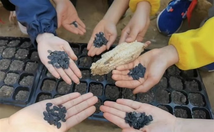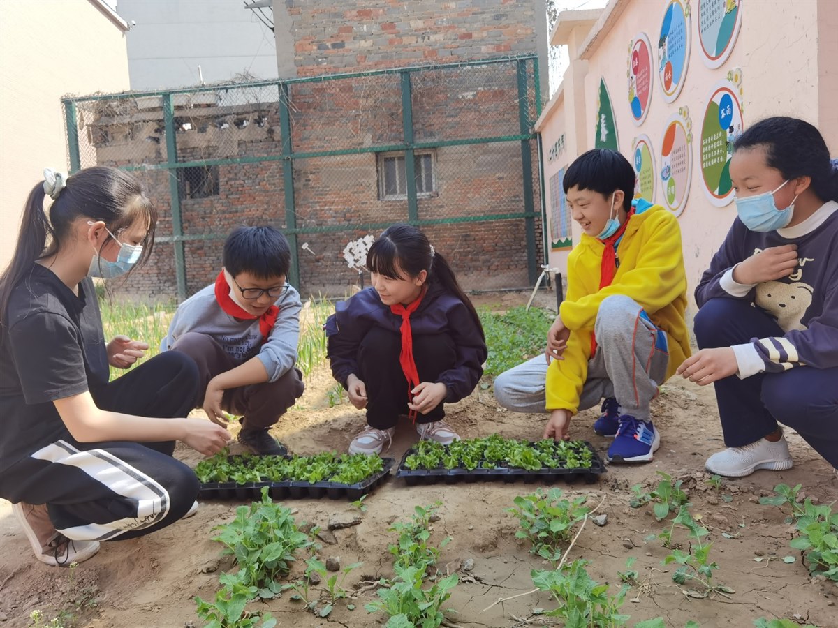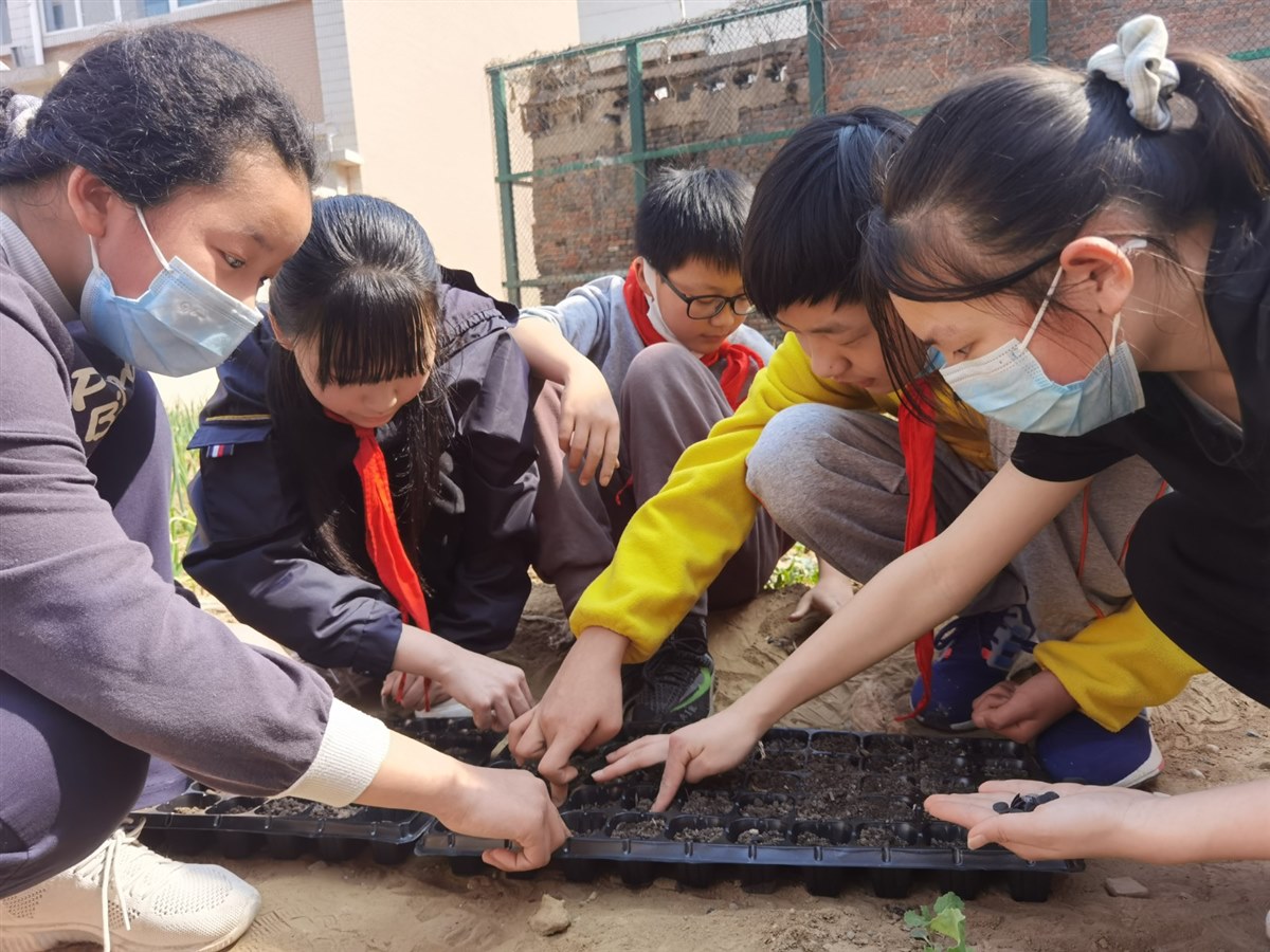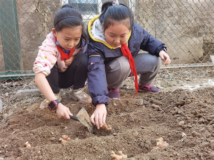 “种植当岁初,滋荣及春暮。”早春到,万物当复苏。为了让学生们也体验一把春种,这所学校的老师带孩子们走进了学校的阳光小田。“童孙未解供耕织,也傍桑阴学种瓜。”他们这次不仅要学种瓜,还解锁了新花样:用育苗盘培育丝瓜种子和生菜种子;用小黄姜和土豆块让状根果实发芽;再用韭菜根养根种植蔬菜。 育苗盘培育法比较复杂。首先要选择育苗盘并对其消毒,再配置基质材料,然后装盘、压穴、播种,最后再铺上基质,刮掉多余蛭石直至与格室相平。状根果实的种植较之前者则简单了一些。只需记住四步:一分,二种,三盖,四浇。一分是把小黄姜中发芽的部分掰掉,把土豆中发芽的部分切开;二种即移块入土;再盖上土浇上水,就静待其生根发芽了。养根种植蔬菜则更为容易。只需把准备好的韭菜根移入坑、盖上土、浇够水就可以了。 “东风洒雨露,会入天地春。”种子现已就绪,只待东风吹来,春雨降下,万物生长。只盼春光多照拂,他日摘我园中蔬。 |