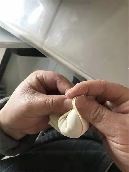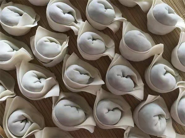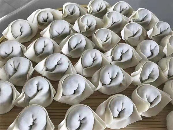 万事俱备,只欠东风。嫌手擀的传统饺子皮太厚,购买荠菜的同时也买回了它的灵魂伴侣——馄饨皮。随着双手不停地翻飞,元宝似的饺子卫兵列队般整齐地摆放在锅簰上。