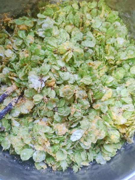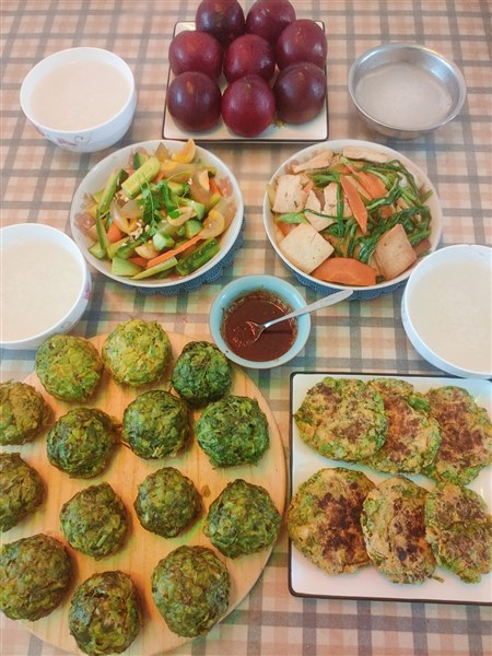 | 昨天早上吃了蒸榆钱窝窝,享受舌尖上的春天,感恩大地的馈赠,全身心都是满足。 今天继续吃榆钱,一盆洗净的榆钱分一小部分换个吃法。一多半还用面粉拌拌还蒸成窝窝,依然是团成球,上锅蒸熟即可。今天蒸的时间减少三分钟,出锅时果然色彩青翠多了,颜值高于昨天的。 剩下的我假如玉米细糁和少许面粉,打入两个鸡蛋,放入食盐、十三香搅拌均匀,有滴入几滴香油。然后用手均匀分成大小一样的小剂子,再轻轻按压成小圆饼,电饼铛中刷入少量油,等油温热了放入小饼,两面煎至金黄就可以了。 果然,油煎的不仅色泽好闻着也香,金灿灿的小饼透着榆钱的青翠,还没吃我就喜欢得很。轻轻咬上一口,有玉米糁儿的韧劲还有榆钱的清香,更有油盐混合的咸香。我觉得这个口感贝贝会喜欢吃,蒸的榆钱窝窝贝贝说有点儿黏,她不喜欢吃。 炒了一盘豆腐青菜,凉拌一盘变蛋黄瓜,依然是大米稀粥,配着榆钱窝窝和榆钱小黄饼,我们的早餐就完美上桌了。 一种榆钱两种吃法,窝窝小黄饼,蒸煎两相宜。婆婆说蒸的好吃,又软又糯醇香可口。贝贝说小黄饼好吃,外焦内酥油香劲道。我觉得两种都好吃,因为是我亲自做的。先生和贝贝的口感一致,喜欢油煎的榆钱小饼,父女俩意见统一,吃得欢喜。 其实,不管怎么做怎么吃,都是吃榆钱的清香,那是春天的味道,也是记忆中的芳香。而我更享受的是制作的过程,蒸也好,煎也好,当榆钱经过我手指的温度后,华丽丽变身为美食时,我的心是满足的。家人幸福的享用,我为此付出的时间和劳动就是值得的,这种付出就是快乐和幸福的。 咀嚼春天,咀嚼生活,咀嚼平凡的日常,我是用心的。爱做美食的我,越来越能体会:用爱对抗慵常,日子会多一点儿趣味;用美点亮琐碎,岁月会多一点儿温情。 早餐是生活美学的开场白,我喜欢用心做盈盈又美味的早餐。我是如此喜欢这种小日子——在烟火里谋生活,于清欢中寻真爱。 舌尖上的春天,你品尝了吗? |
