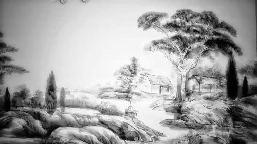 茅舍栖居溪畔。