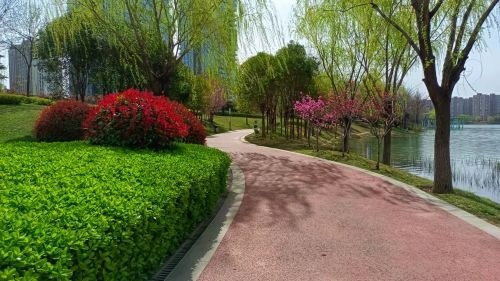 一弯春绿绕堤湖, 万般芬芳润如酥。 不妨漫渡三万秒, 晨出暮归揽盛图。