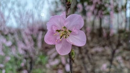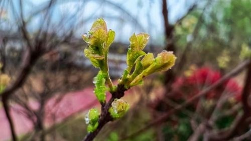 新芽雨露自不弃, 似绿若黄幻仙衣。 桃花十里醉清风, 莫若我心向天齐。