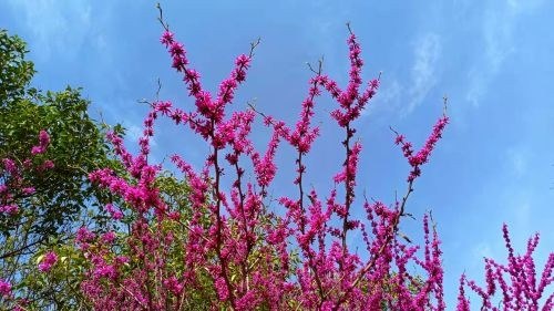 一碧晴空十万里, 万条荆枝探空稀。 幸得紫花凌飞渡, 羞退云霞了无迹。
