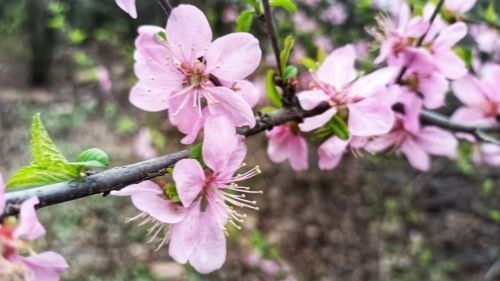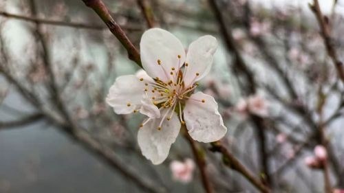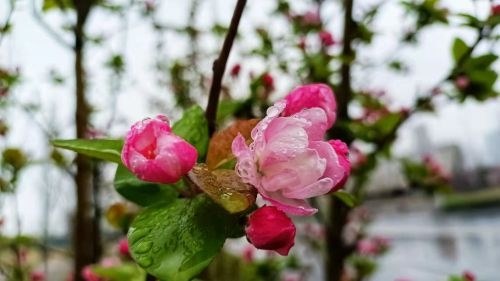 昨夜春雨启露, 一帘芳华傲物。 煞是枝头红, 嫣然独立风骨。 倾注, 倾注, 却是碧桃漫舞。