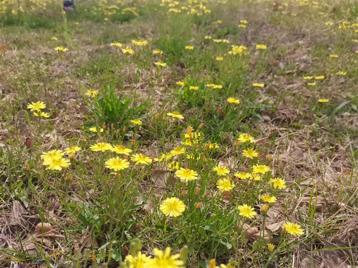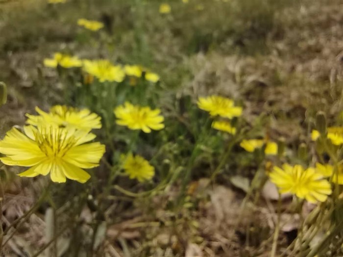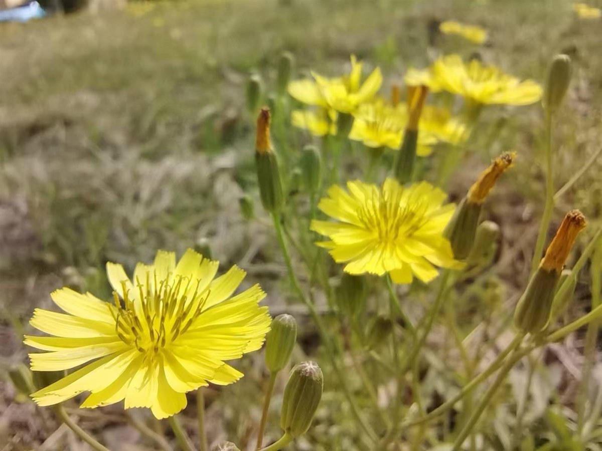 没有想到,在家楼下的草地上,竟然与它在这里相遇,如此柔弱的生命却开得如此绚烂。今年的春天来得格外晚,而它却开得如此得早,谚语曰:小满日,苦菜秀。现在刚到清明,它已经一朵一朵怒放在草色遥看近却无的草地上。
