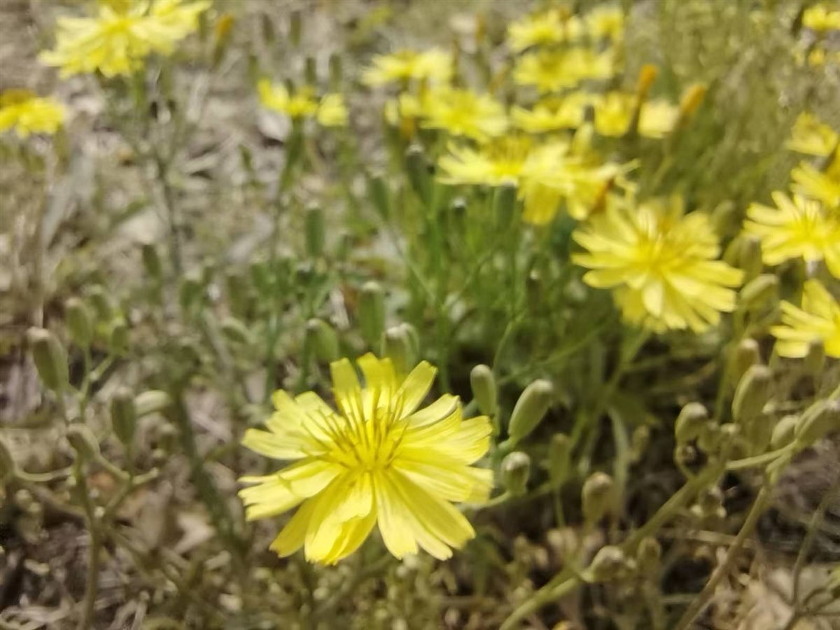 忍不住美的诱惑,走出家门,和小花来一个近距离的接触,走近一看,原来这是农村田间非常常见的一种野菜:苦叶苗。它在农村的田间、地头、路边……只要有土的地方,都能看到它的身影,因为长得随意,所以乡间的农人谁也不会去关注它,如果长在庄稼棵里,还要连根拔去,随意地扔到太阳下曝晒,生怕再活,可是只要有水有土,过不了几天,这些被扔掉的,经过挣扎又长得坦坦荡荡。