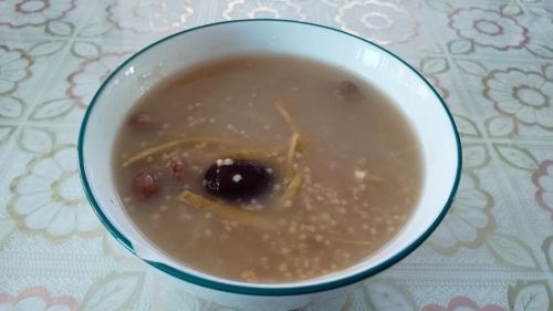 晚来米小粥, 熬上枣红豆。 几根咸芥丝, 简餐已入喉。