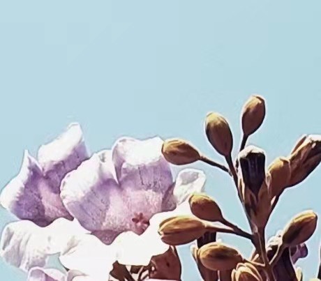 桐花粉嫩在山间,半烟半雨随蓝天。一点时光懒,清欢花馨甜。 如诗如画山,此间多缱绻。醉卧月色下,绿韵动青山。