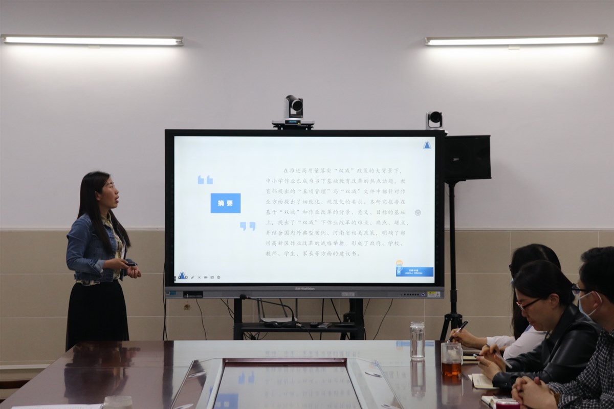 教研和智慧教育发展中心魏玮副主任基于高新区作业改革的基础分别从作业改革的意义与目、作业改革的本土行动、作业改革的难点痛点、作业改革的有益经验、作业改革的六项工程和作业改革的高新智慧六个方面分享“双减”背景下郑州高新区中小学作业改革研究报告。研究报告在基于“双减”和作业改革的背景、意义、目标的基础上,提出了“双减”下作业改革的难点、痛点、堵点,并结合国内外典型案例、河南省相关政策,明确了郑州高新区作业改革的战略举措,并形成了建议书。