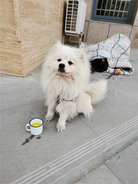 事情还得从两天前说起,小区有老师看到一女子晚上直接裹一条被子在门口银行外台阶上露宿,一个平板,一条狗,还有旁边一辆电动车。看上去也就二十多岁,一个人女子露宿街头,旁边就是地铁口,过往的人群人来人往。