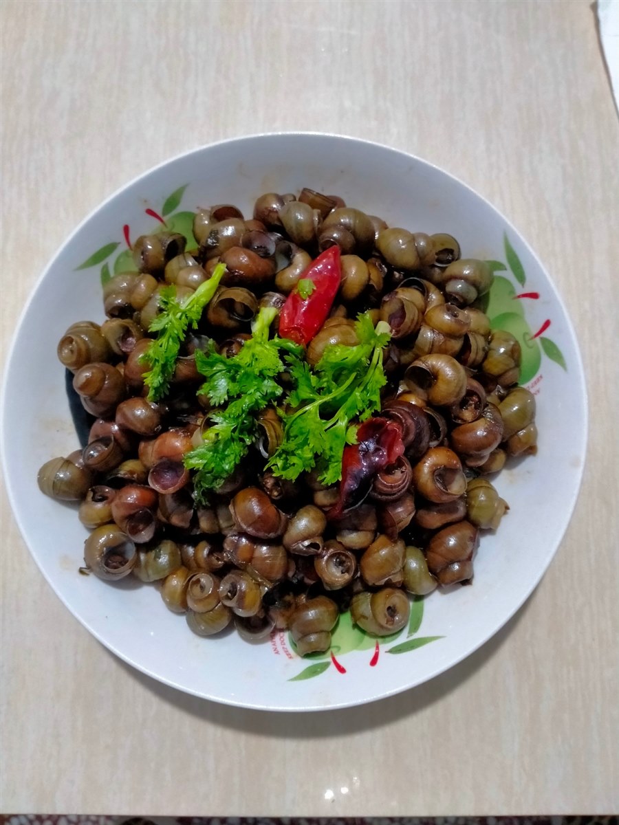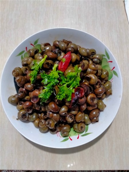 | 我们班班主任家养了一个鱼塘,在抽水逮鱼的时候捉了很多螺蛳,今天早上她给我带来一提兜儿,一见到我她就说:“时姐,快去厨房拿一个盆盛点水,把这些螺蛳倒进去,不然到下午你回家的时候它们就干死了。” 我飞快的跑到厨房拿了一个盆回来,班主任把螺蛳呼啦一下倒进了盆里。这些螺蛳不大不小是青褐色的,看起来外表也挺干净的。班主任说这些螺蛳在家已经吐了几天的脏东西了,晚上回家就可以做着吃了。 下午放学我去拿螺蛳,发现它们像蜗牛一样从壳儿里探出半个身子,有的趴在盆底儿上,有的趴在盆壁上,它们悠闲自在的趴在那儿一动不动,一点儿也不知道一会儿就要被做成美味吃掉了。 我把它们从盆里倒进了塑料袋里开心的回家了,边走边想晚上可以给儿子做好吃的了。 回到家我先打开手机搜一下做螺蛳的视频。按照上面的步骤我开始操作起来。 第一步先把螺蛳的尾巴尖儿剪掉。视频上没有说为什么要剪掉尾巴尖,我也不知道为啥要剪掉它,难道是要剪掉尾巴后半部分的脏东西吗?我拿了一把剪刀开始剪,这些螺蛳的尾巴尖不太好剪,因为它们是硬的,尾巴尖被剪掉以后,里面会露出黑色的脏东西,我用剪刀把脏东西剪掉但剪不干净,我想等一会儿做熟吃的时候要小心一点儿。剪了一会儿,我的手上就没劲儿了,可是我还是继续剪着,大概剪了一个小时,才把所有的螺蛳剪完,我都有点后悔了,吃这点儿螺蛳太浪费时间了,还不如不要它们呢。 视频第二部是要把这些螺蛳绰水,我把螺蛳又洗了一遍,倒进滚烫的开水里,在滚水里绰了十分钟然后捞出来,被绰过螺蛳的水里,我闻着有一股的焦糊味,很不好闻,不知道做熟的螺蛳好不好闻。 视频第三步就是要开火做了,按照视频切了葱姜蒜放在一边备用,然后在锅里放上少许的油,我把火锅底料放到油里,开始煸炒,等到火锅底料融化以后,我把葱姜蒜放进去开始爆炒,等闻到香味的时候倒入螺蛳,加耗油、加盐、加糖,又往里面添了几碗水,开大火像做熬炒鸡一样开始熬炒,随着铲子在锅里来回翻动搅拌,螺蛳在锅里哗哗做响。 蓝色的火苗舔舐着锅底,一会儿锅里的水开始沸腾起来,从锅里也漂出一阵阵的香气,我不禁垂涎欲滴。大概过了有半小时的时间,锅里的汤水变成了少许汁水,马上就要出锅了。我边盛螺蛳边大声喊儿子:“儿子,螺蛳出锅了,赶紧来吃饭吧”,儿子应声而出,看来儿子很期待出锅的美味。 今天只有我和儿子在家吃饭,我和儿子各拿了一个牙签,我用牙签把螺蛳肉从壳儿里挑出来,发现它的肉一多半是灰色的一少半是白色的,肉的里面是白色的卵,再往里面就是它的排泄物了,不过排泄物已经很少了,因为我已经把尾巴尖剪掉了,吃的时候小心点只吃灰白色的肉就行了。 儿子说今天的螺蛳肉炒的很好吃,肉很筋道,味道也很好像大盘鸡一样,儿子吃了很多,我吃的也不少,满满一大盘被我俩吃完了。 被同事赠送东西是一种幸福,做美味佳肴的过程是一种幸福,看儿子吃美食是一种幸福,自己品尝劳动果实是一种幸福,只要心态好,幸福会永远相伴相随。 |