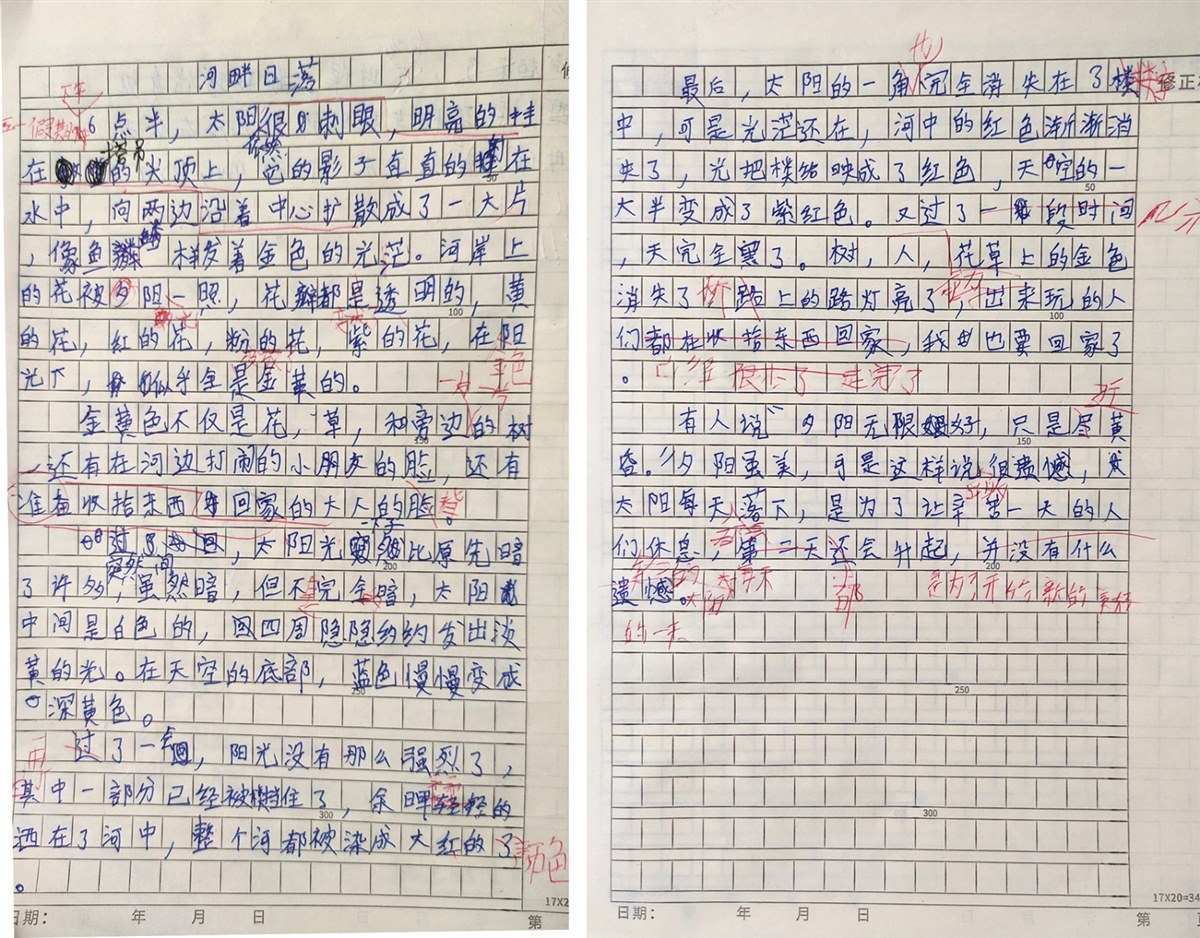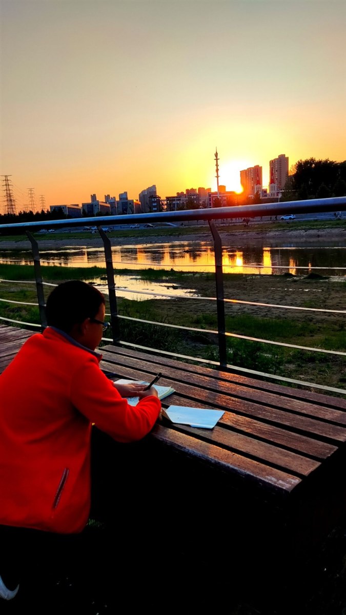 经被楼挡住,余晖柔柔地洒在了水中,整个河都被染成了