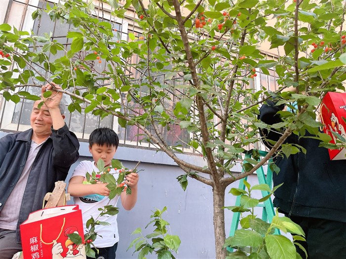 | 那棵樱桃树,我的朋友 郑东新区普惠路小学 花梓默 我家门前有一颗树,我却从来不知道它是什么树,它每天都站在那里,风一吹,它的秀发就随风摆动。它不是最大的那棵树,也不是最粗壮的那棵树,树叶也不茂密,没有人在它下面乘凉,它是一棵被大人忽略的小树,但它却是我的朋友!我有时候和它比身高,他那支最低的枝干和我差不多高,别看这个枝干低,叶子却是最大的,和我的手掌差不多大! 不知不觉,雪白的樱桃花凋谢了,树上结满一串串小冰糖葫芦一样的樱桃,果子又小又圆,从浅绿色变成黄色,接着又由黄色变成红色,这时候,它再也不是那棵不被关注的小树了,过往的人们纷纷来到树下,观赏着它美丽的身姿,对它的果实也是垂涎三尺,连小鸟都经受不了果实的诱惑,趁人不备偷偷的啄掉了好多果实,真是防不胜防啊! 为了让更多邻居尝到美味的樱桃,我和门口的老爷爷一起拿着袋子,搬来梯子,开始了集体大采摘。半个小时不到,我们就把樱桃摘完了。我和奶奶把樱桃拿回家冲洗之后,拿到门口的小广场和邻居们一起分享,红宝石一样甜美的樱桃甜进了每个人的心里,看着大家脸上洋溢的笑容,我心里想,恰逢劳动节,我将劳动的果实分享给大家,这是多么有意义的一件事啊! 即使樱桃树没有了果实,它依然是我的朋友,我还会抽空和它玩,观察它四季的变化,因为它将最美好的自己奉献给了人们!     |