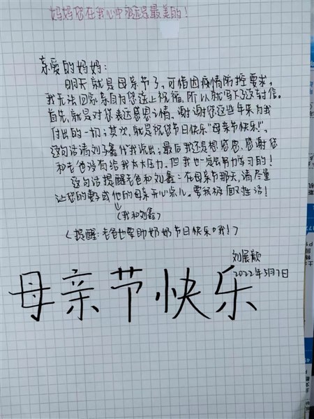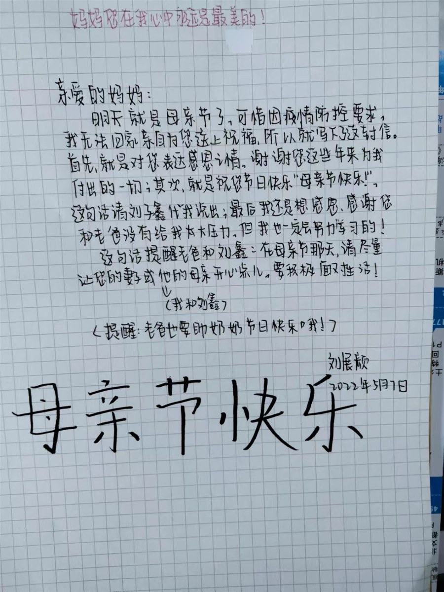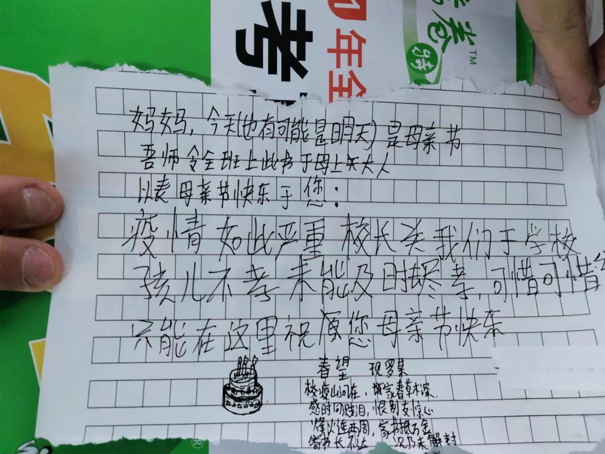 往年的母亲节,孩子们都在家里,因此会陪母亲过。有给妈妈送花的,有帮妈妈做家务的,给有为母亲做贺卡的,有给妈妈洗脚、捶背的……总之,形式多样,看着就能感觉母亲的幸福。可是,今年的母亲节怎么个过法,我有点犯难。