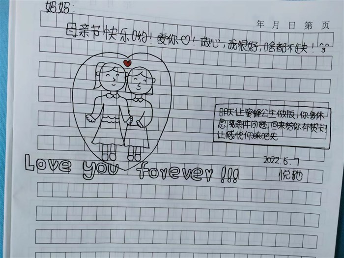 教室里很安静,同学们开始了认真的书写。有的同学给妈妈画了自画像,附上了对妈妈的祝福与感谢;有的把想对妈妈说的话写成了一封长信;有的把千言万语浓缩成了一首诗,还有那不善言辞但读起来却感人的朴实的小纸条,也有给妈妈写了许多想为她做的事,却让爸爸替他去完成的……