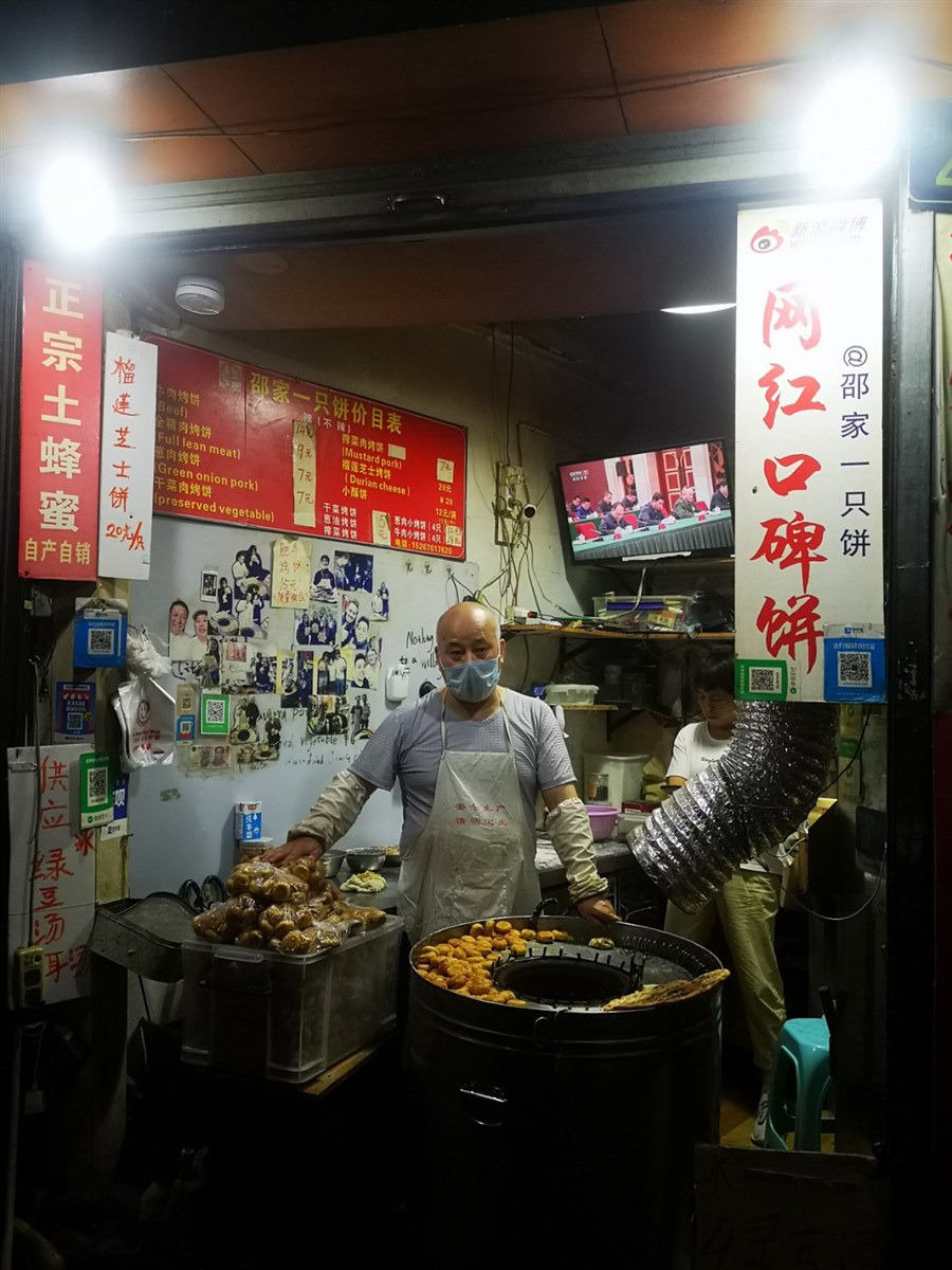 看看墙上的合影照片,英文单词和新浪标识@邵家一只饼,老店主也可以紧跟时代潮流,惊喜不禁涌上心头,这些都是好吃的证明啊!在这几平米的铺子里,又书写着怎样的人生呐! 再来说说老板现烤的梅菜扣肉饼吧,酥酥脆脆,口味独特,肯定是独家秘制配方!还有灶台上铺满的梅菜小肉饼,看着就很诱人!因为是按袋儿卖的,真后悔没有买来尝一尝! 片儿川
