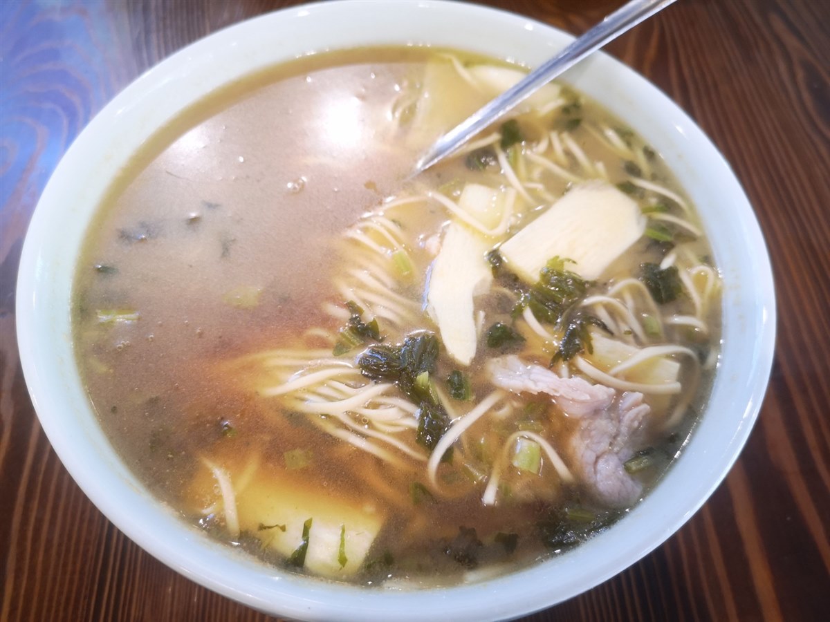 一开始看名字我以为是川菜,可是我左等右等,其他菜也吃了一多半,本想如果还没做就退了,因为也差不多饱了。但老板说已经在制作中了,于是还是等吧!可是没想到千呼万唤使出来的却是一碗面条!第一反应是上错了吧,我没要面条啊!只听服务员放好说了一句“片儿川好了!”我这才恍然大悟,原来片儿川就是面条呀!看到满满一大碗,我真后悔我点了,一方面肯定吃不完,最重要的是我们北方有那么多好吃的面,干嘛在杭州吃!多少有一种“上当受骗”的感觉! 就在刚才我百度了一下“片儿川”,看完只觉得自己才是真的傻!一起来看看吧:片儿川是杭州市的一道传统特色小吃,属于浙菜系;面的浇头主要由雪菜,笋片,瘦肉丝组成,已有百余年历史,最早由杭州老店奎元馆首创。其特色在于雪菜和笋片的鲜美。 这感觉就像北京的湖可以叫做海,杭州的面条叫“片儿川”!
