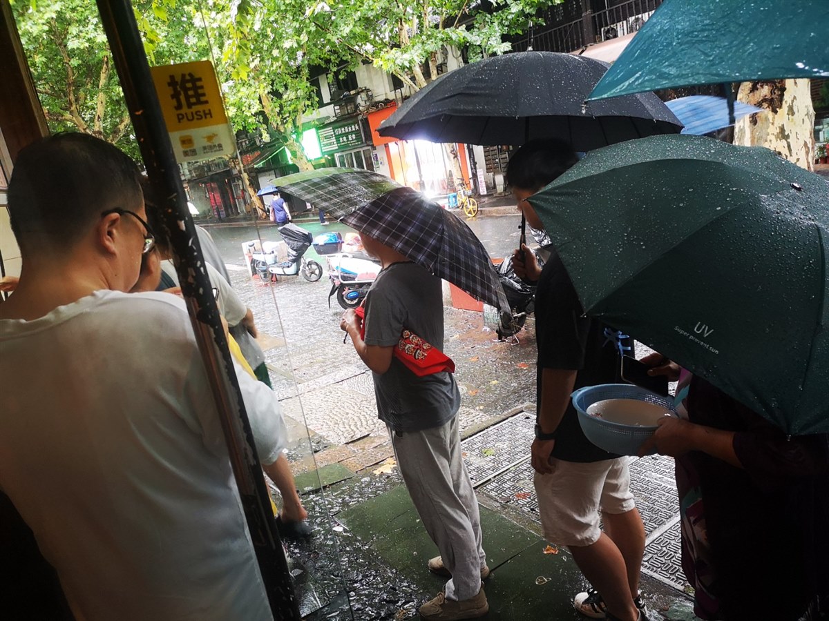前一天晚上在鼓楼美食街闲逛与这家老字号不期而遇,这也算提前踩点了吧!明天就要返程了,所以一定要来吃顿早点再和杭州说再见! 大早上下着淅淅沥沥的小雨,没有打伞就直奔早餐店!等走到才发现店门口已经排起了长长的队伍,可是人家都有伞!一位热心的阿姨就连忙招呼我到她的伞下躲雨!再看看人家手里还端着碗,盆儿之类的餐具,一看就是老顾客!外面的油条窗口一直供不应求,等排到我的时候才知道只有油条需要外面排队,其他的都是屋里点餐。和阿姨道谢过之后就去店里,看到他们一个个忙而不乱的身手,你就能想象到这是每天早上重复千遍万遍的动作!店里主要经营的有油条、甜豆浆、咸豆浆、糖糕、油炸粽子,当然还有其他的,不过我只记住了自己中意的这几样! 我点了一碗咸豆浆、一个糖糕、一个油炸粽子,找到座位之后安安静静的开吃,然后环视店里一圈,食客有七八十岁的老人,有四五十岁的,还有二三十的上班族!再细细品味一下咸豆浆真的很好喝,在北方基本都是甜豆浆,咸豆腐脑居多!加了小葱和好几种调味料的咖啡色咸豆浆还是第一次喝!不仅美味,感觉也很新奇,心里想着如果不是要回家,我还会来光顾的!一开始我在犹豫炸粽子会不会太油腻,但是因为没有吃过所以点了一个。结果和豆浆搭配着吃恰到好处,单独吃起来的味道也是香而不腻! 一边吃一边抬头看看墙面上贴的老旧报纸,发现好几位名人都来过游埠豆浆!随着视线的转移我突然发现了几个令我震惊的大字“不要搅拌豆浆”,一时间不知说什么好,只能苦笑!这也解了我心中的疑惑:“为啥我碗里的豆浆是稀的,别人的是稠的!”原来是我把豆浆吃错了!脑子里的第一反应是“不行,等吃完我得重新再要一碗尝尝最正宗的吃法!”再平静一下“已经吃饱了,没事儿,这样也很好吃!”油埠豆浆,下次去杭州一定要喝啊! 吃完饭返回吴山驿青旅取了行李,淋着小雨匆匆向地铁站走去。期待与杭州美食的再次相遇!
