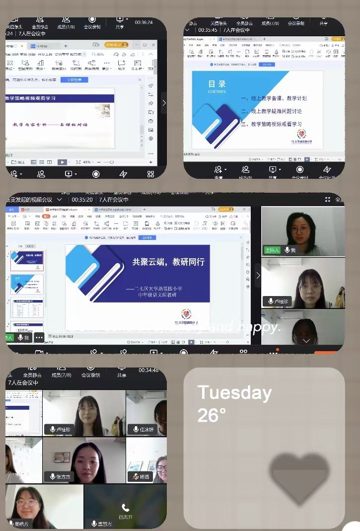 突如其来的疫情使我们再次开启了线上教学模式,模式虽改变,教研不迟到!为确保疫情期间线上教学质量,帮助教师扎实开展线上教学,充分发挥集体智慧,实现资源共享,实现“停课不停学,停课不停研”的工作目标 ,二七区大学路第四小学中年级语文教研组于5月4日上午开展了线上教学研讨活动。
