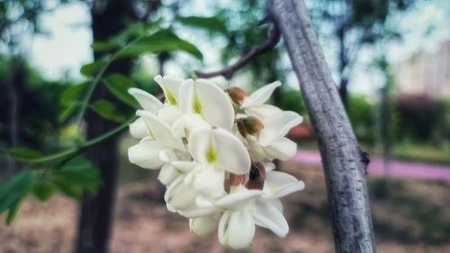 四月槐花香满枝, 本应彩蝶作花痴。 枝折杆断是何故? 轮翻采摘花尽失。