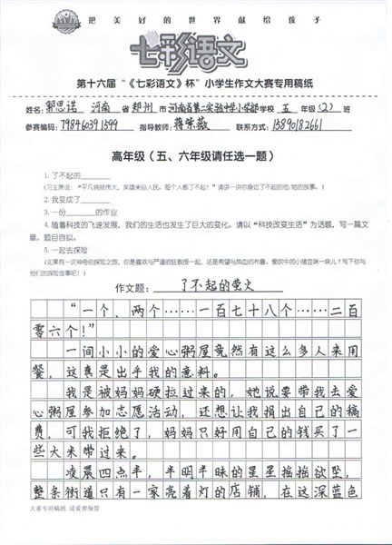 离开粥屋时,我说:“妈妈,下次把我的稿费捐出来吧!”