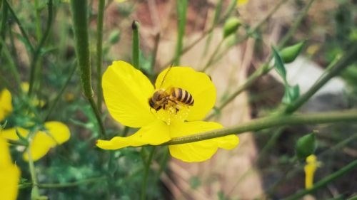 几朵黄花风醉, 轻摇漫舞曲回。 但见飘香处, 蜂去蜂来蜂飞。 秀美, 秀美, 山野凡尘景随。