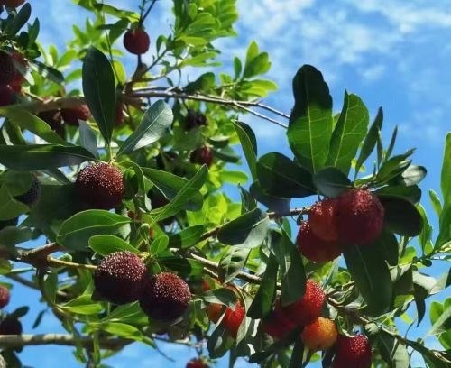 风微千里白云静, 连株万绿时若停。 五月新园醉心处, 青枝缀红杨梅丰。