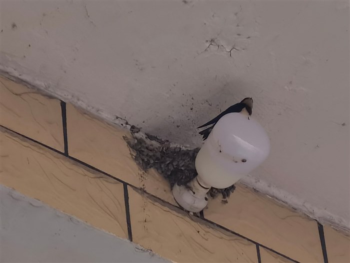 终于能够着了,小家伙的脚被夹在了灯泡和灯座的缝里了。燕子可能因为我的靠近,扑棱翅膀更厉害了。我从小就不敢摸小动物,所以它这样扑棱,反倒把我吓得无所适从了。那就试试把灯泡拧下来吧,但刚试一下,它就又开始扑棱了起来。儿子说:”肯定你拧灯泡,拧疼它了。“