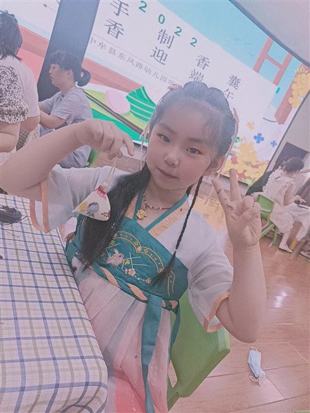 在每个班里,老师们也组织开展了教室游戏,我觉得我们班开展的“我型我秀”走秀活动最精彩。我们班有汉服飘飘的“小仙女”、有伶俐帅气的“蜘蛛侠”、有果敢机智的“奥特曼”、有英勇无畏的“消防员”……孩子们除了参加游戏活动,他们还亲手制作了手工香囊。一片一片的花布在孩子们的手里都变成了一个个色彩鲜艳的端午节香囊。