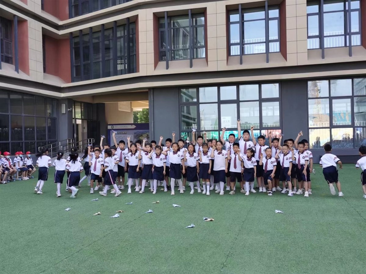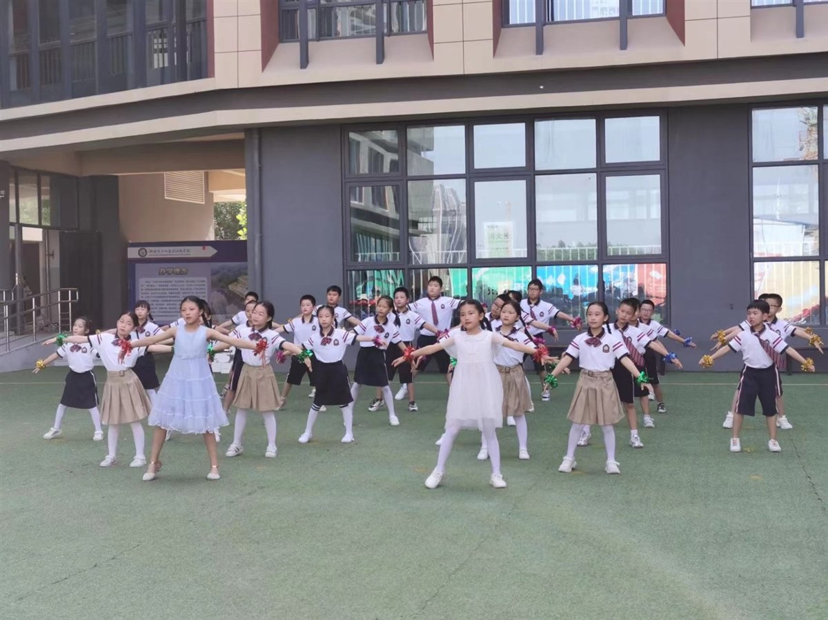 你看!科技社团最先出场,伴随着音乐声我们放飞了纸飞机,让纸飞机载着我们的梦想飞翔;足校社团的男生们各个精神抖擞,花样秀球看的我们掌声不断;双语社团的我们唱着英文歌曲伴着欢快舞蹈,连校长都给我们点赞呢;德育社团里我们身着民国学生装慷慨激昂朗诵着《少年中国说》,“中华少年,顶天立地当自强!......”