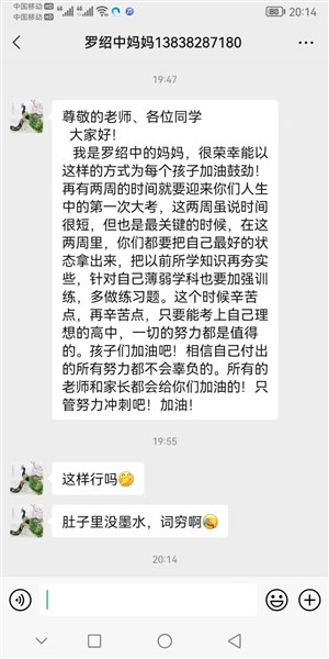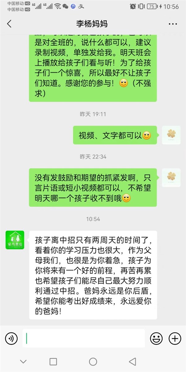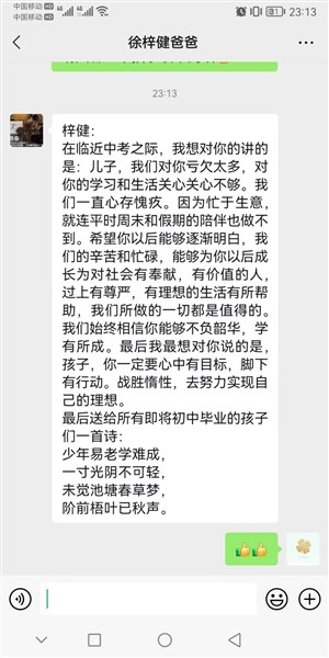 孩子们,你知道百米赛跑最重要的时间在哪吗?对,最后的关键时段,所以最后两周你们一定要珍惜为数不多的时间,厉兵秣马,好钢用到刀刃上,你们有潜力,有能力!老师父母都相信你们!你们更要相信自己!