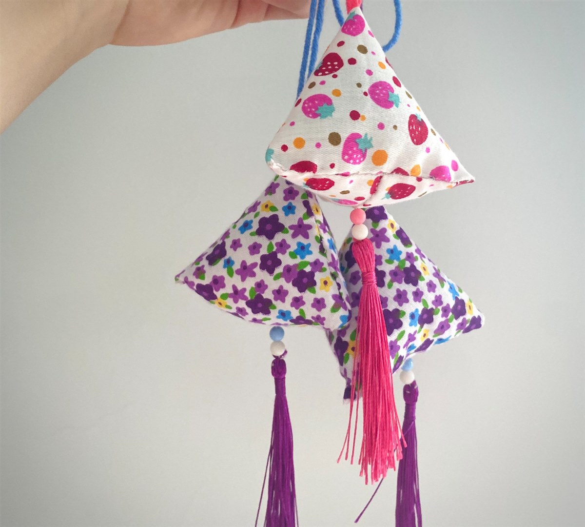 在学科组长的带领下,我们提前准备好了制作材料,有针线、艾草、流苏和漂亮的布片。接下来,组长穿好针线,拿出一片碎花布片开始给大伙进行示范,她一边制作一边给大家讲解着:“首先我们把布片反过来对折,然后把左右两条缝好......”看着组长娴熟的针线活,让我们组的年轻教师一个个赞不绝口。接下来我也照着组长有模有样的学起来,于是我把针拿在了手上,哆哆嗦嗦的缝下了第一针,感觉还不错,我又缝了第二针、第三针......几针下来,我的心里平静了许多,终于一针一线的把它缝完了。接下来,从另一个口把布给反过来。再把艾草放进去,把流苏放在底部的中心给缝上,针线线穿过小球缝在另一头,这样一个精美的香包就做好了。 戴香包,是端午习俗之一。淡淡艾草香,浓浓端午情,根根绳线连,切切情意牵。一只小小的香包,记录着一个端午的团圆,记录着一个端午的欢笑。同时还承载着对亲人的祝福,对平安健康的祈福。 缝一个香囊,亦是缝一颗文化之心。古时的风吹到了今朝,制作香包时每一针每一线都是在穿越时空与古人对话。一针一线,缝的是中华文化。一针一线,缝的是文化传承。心灵手巧的朋友们不妨也试试缝制一个属于你的独一无二的香包吧!