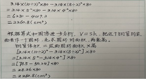 | 以课本为基础,重视教材,拓展延伸 教材是基础,是源泉,是数学知识、方法、问题的原点,重视教材,拓展延伸。 六年级数学下册教材第29页第12题,下面是一根钢管,求它所用钢材的体积。(单位:cm)  因为学生之前学过求不规则物体的面积,用间接法求不规则物体的体积,割补的方法求不规则物体的体积;排水法求不规则物体的体积,用放入物体后的水的体积和不规则物体的体积和减去纯水的体积就是不规则物体的体积。 学生有了一定求类似物体体积的经验,不难理解这个题目:所用钢材的体积就是大圆柱的体积减去中空的小圆柱的体积。  后来又见到一个类似的题目:一种古代的圆形钱币,其直径约为7厘米,每个钱币的厚度为4毫米,正中间的正方形缺口边长为2厘米。如果把20个这样的钱币对齐正方形缺口垒起来,垒起来的钱币的体积大约是多少立方厘米。  首先,让学生通过画图或者空间想象感知到用钱币垒起来的图形的大致形状,能够知道用圆柱的体积减去中空长方体的体积。 根据求钢管体积的方法,可以得知这个图形的体积等于底面面积乘高。底面面积根据外方内圆和外圆内方的知识计算。  教材是教学内容的载体,教材的新授内容和教材的练习内容都是对教材的最好诠释,教师不仅要重视教材中的例题,不仅要精度教材的新知,更要重视教材中的每一个例子,每一个材料的选用,每一个习题的设置,甚至每一张图片的选择。 |