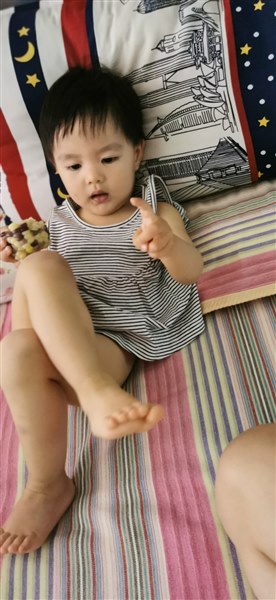 现在,两岁的你能认识0-9十个数字,能分辨几种颜色,会唱几首简单的儿歌,也能说下来《咏鹅》《静夜思》以及《相思》《三字经》,还会讲《小猫汤米》系列绘本和其他好多绘本,加起来有二十多本吧。你会自言自语的说:“吃饭要洗手,不洗手会肚子疼,肚子疼要找汤米看病,药好苦呀!”也会自己给自己讲故事:“小熊好伤心呀,它太小什么都做不好,爸爸妈妈安慰小熊:虽然你还很小,可是你拥有一个很大的东西呀。是什么呢?是我们的爱呀!”妈妈没有刻意去教你,都是晚上哄睡时经常讲的。谁知道小家伙记性这么好。每次听你奶声奶气咿咿呀呀的念诗,全家人都乐得不行。说真的,妈妈为你惊人的语言能力感到自豪和开心,但是比起这些,我更希望现阶段能帮助你养成良好的习惯和性格,毕竟那些东西将来你都会系统的学习,不着急。