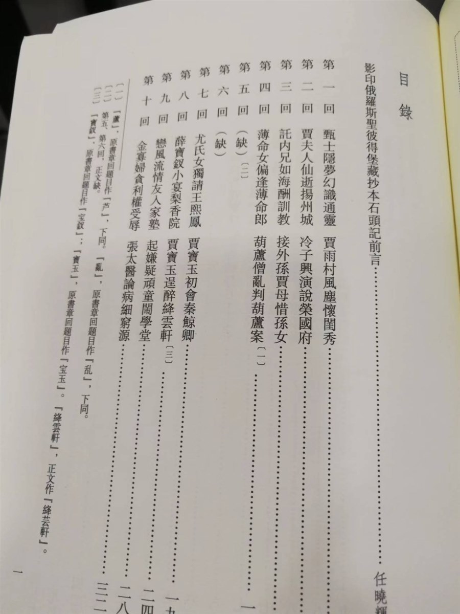 我认真浏览了序言、书目和前面几回。序言中详细介绍了整理者前往俄罗斯研究这个抄本的过程,从使用的纸张和乾隆皇帝的御制诗来判断这个抄本大致的时间,研究者做的很细致,连抄纸的小章都不错过。