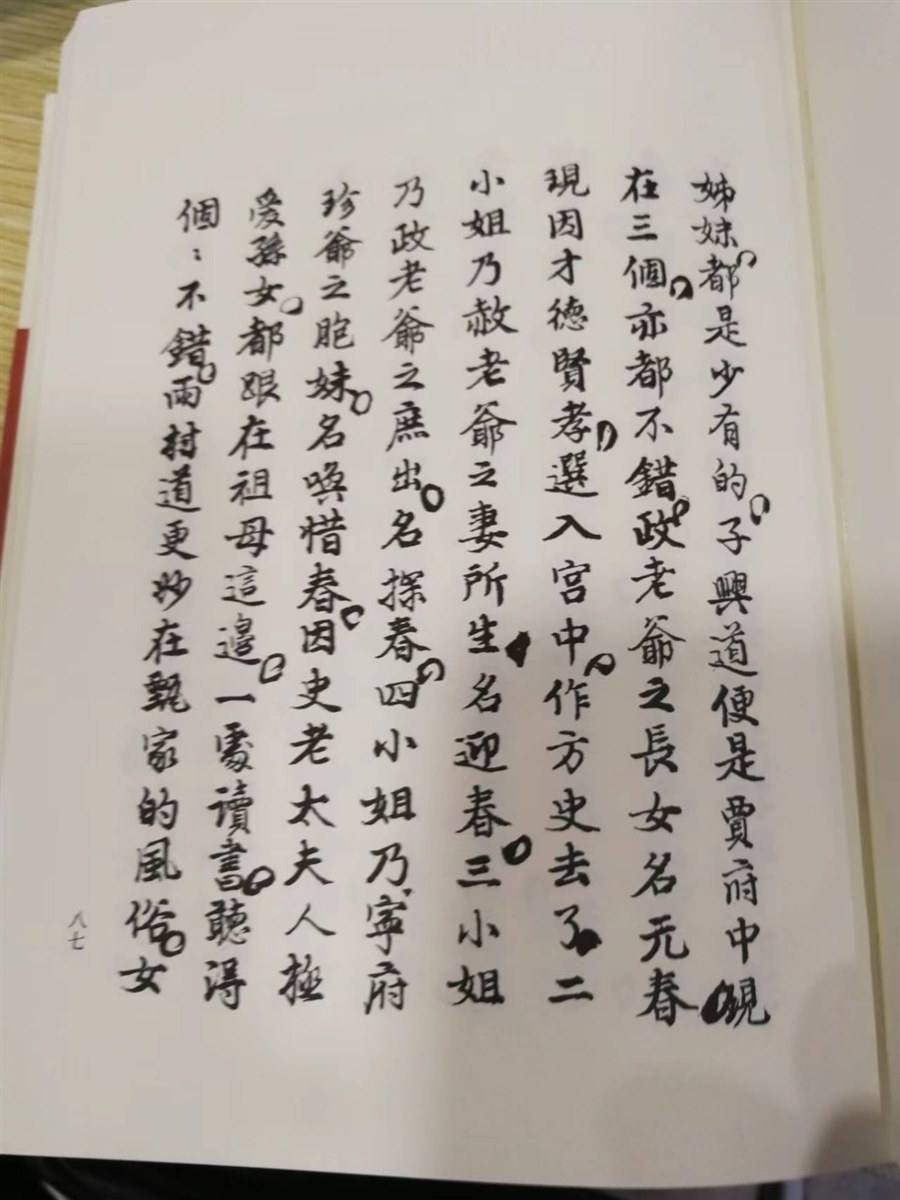 前几天外出监考,在一所学校图书馆看到了几本有关红楼梦的书,其中一本是《马瑞芳说红楼》,另外一套是红楼梦古抄本丛刊《俄罗斯圣彼得堡藏石头记》,两个中午的休息时间,随手翻看了手抄本的《石头记》第一本,看着挺有趣的。