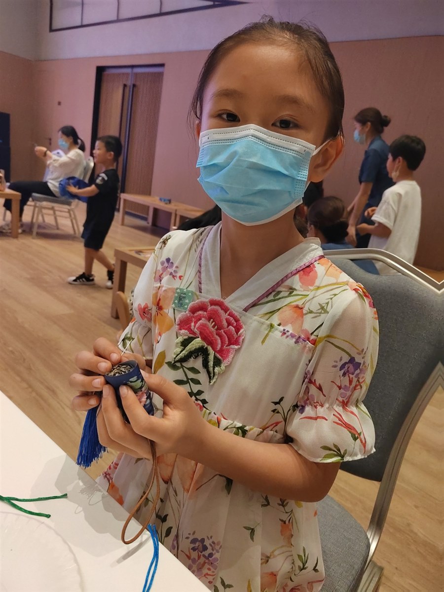 | 农历的五月初五,是我国的传统节日——端午节。 端午节是为了纪念伟大的爱国诗人屈原,相传流放在汨罗江畔的爱国诗人屈原闻讯楚国被攻陷后,悲愤交加,投进汨罗江自尽,附近的百姓引舟抢救,抛洒食物防止鱼虾伤了屈原的身体,从此每年的五月初五,划龙舟,包粽子都成为端午习俗的主要内容。端午习俗内容丰富多彩,由于地域差异,各地不尽相同,悬挂艾叶,吃粽子,赛龙舟,佩戴香包、五彩绳、喝雄黄酒是端午节比较普遍的习俗。 清早起来,一股粽香扑鼻而来,轻咬一口,糯米夹杂着粽叶的清香在我唇齿之间流连,节日的气息从舌尖弥漫到全身。 吃完早餐,我们开始制作香包,妈妈把材料放在我们面前,针、线,一块长方形的布,对折起来刚好是一个正方形,一条挂绳,一个流苏,还有一小包的艾绒。先把长方形的布条反过来对折,对折的上方缝上一个挂绳,皮绳要先打好一个结,然后小心的把结缝制在反面,然后缝制一条边,针脚一定要密一些,不然艾绒会漏出来的,看似很简单的步骤,我却来来回回返工了两次,真是眼高手低啊,缝制皮绳的对角就该缝上流苏了,一样的打上结反面缝制,剩下最好一边没有缝制了,就要把它翻过来了,香包已经初具雏形了,我小心翼翼的把里面塞满了艾绒,圆鼓鼓的肚子才好看,最后一边的缝制更难了,需要一只手捏紧香包的肚子,另一只手用心的缝,虽然针脚不均匀,但我也总算是完工了,香囊有清香、避瘟、驱虫、防病的功效,很开心能戴上自己缝制的香包,我的心里美滋滋的,赶紧跟姥姥视频让姥姥看看我自己做的香包,姥姥夸我长大了,都能自己做香包了。 今年的端午节,我亲自动手制作了香囊,充满了节日的仪式感,感受到了浓浓的节日的气息。我爱端午节,爱那粽子的香甜味道、爱那香包散发出来的淡淡的香味、爱那厚厚的历史传承的味道,爱习俗背后人们对美好的生活的希望!