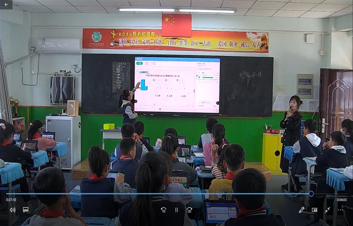 学生自主在平板上操作、小组成员合作交流、全班大屏展示汇报,整个过程学生积极思考、发言、讨论形成有效互动,提高了学生的热情,整个课堂充满了活力和科技高级感。