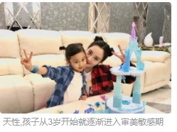 追求完整的敏感期过后,注意力很快就会转移到对其它物品完美性的追求上。比如裙子上的纱烂了一个洞,她就不穿了,女孩子4岁开始出现的审美意识,将影响一生的气质、审美能力和魅力。在这种情况下,儿童的审美敏感期就逐渐转化为了追求完美的敏感期。